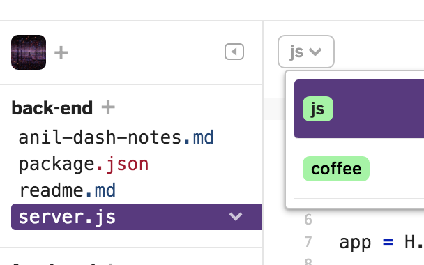 Another feature that lived for months in the beta was the ability to change the language of your document and have it auto-magically just work. So if I was in a js file and I wanted to step up my game, I could select coffee and be cool AF.